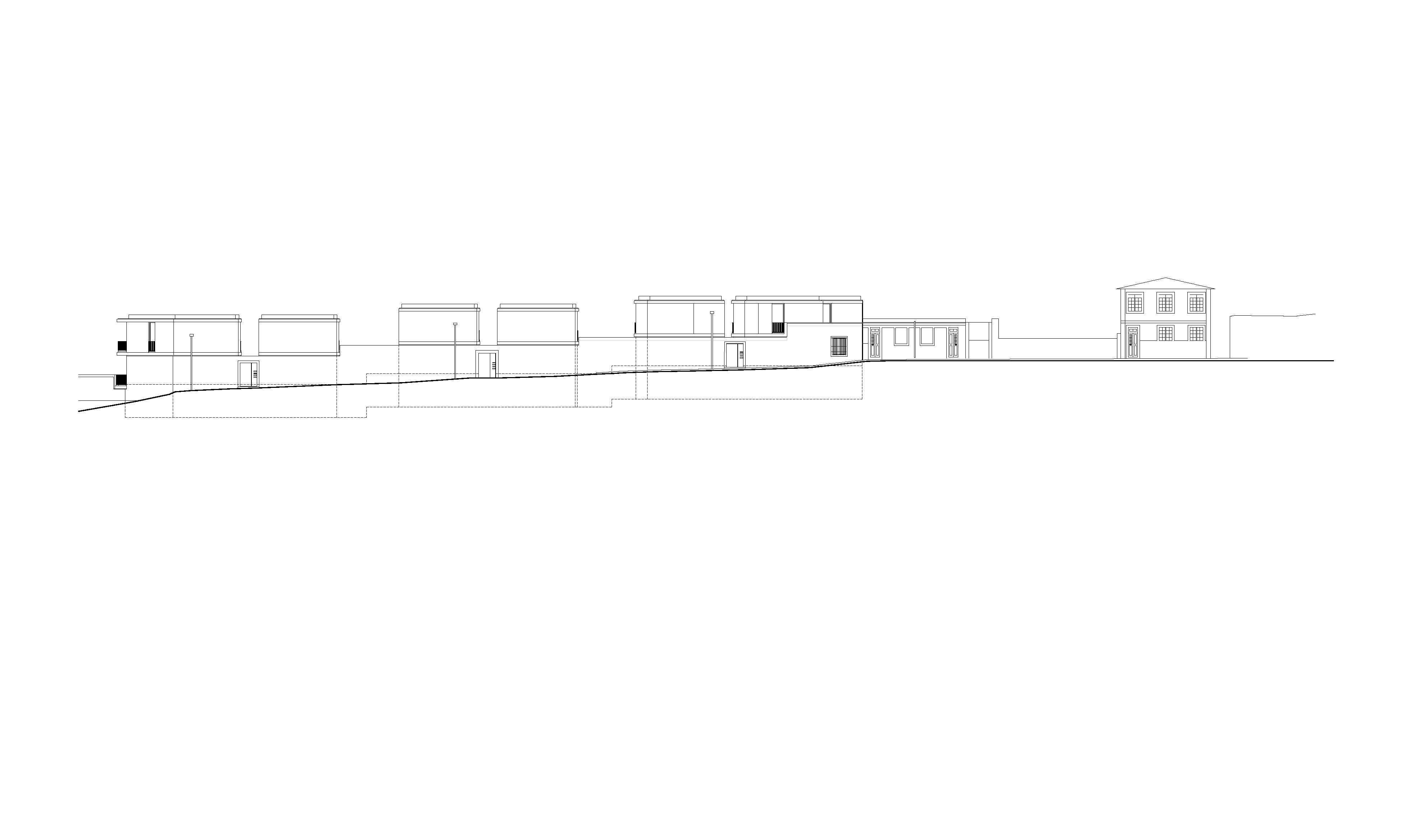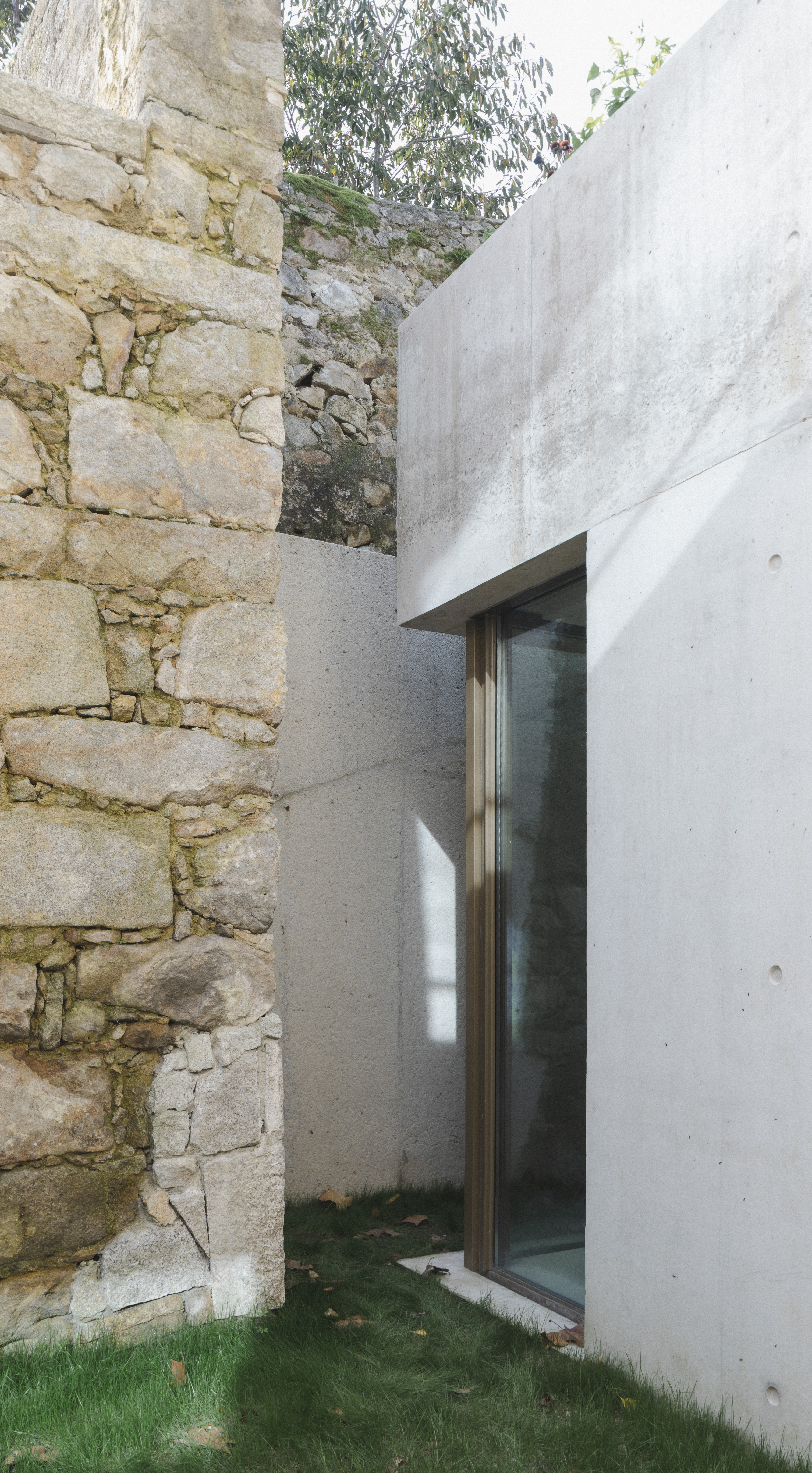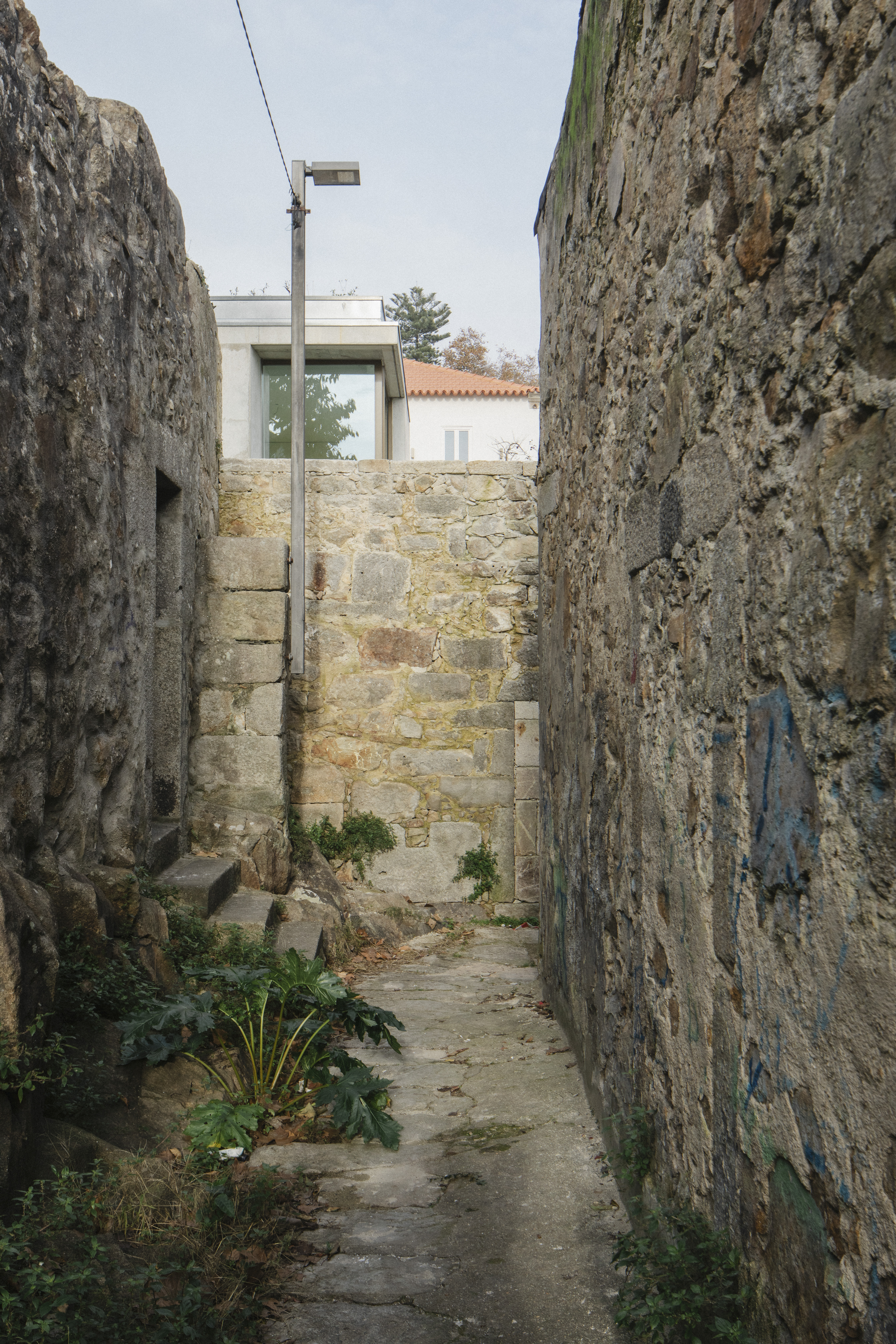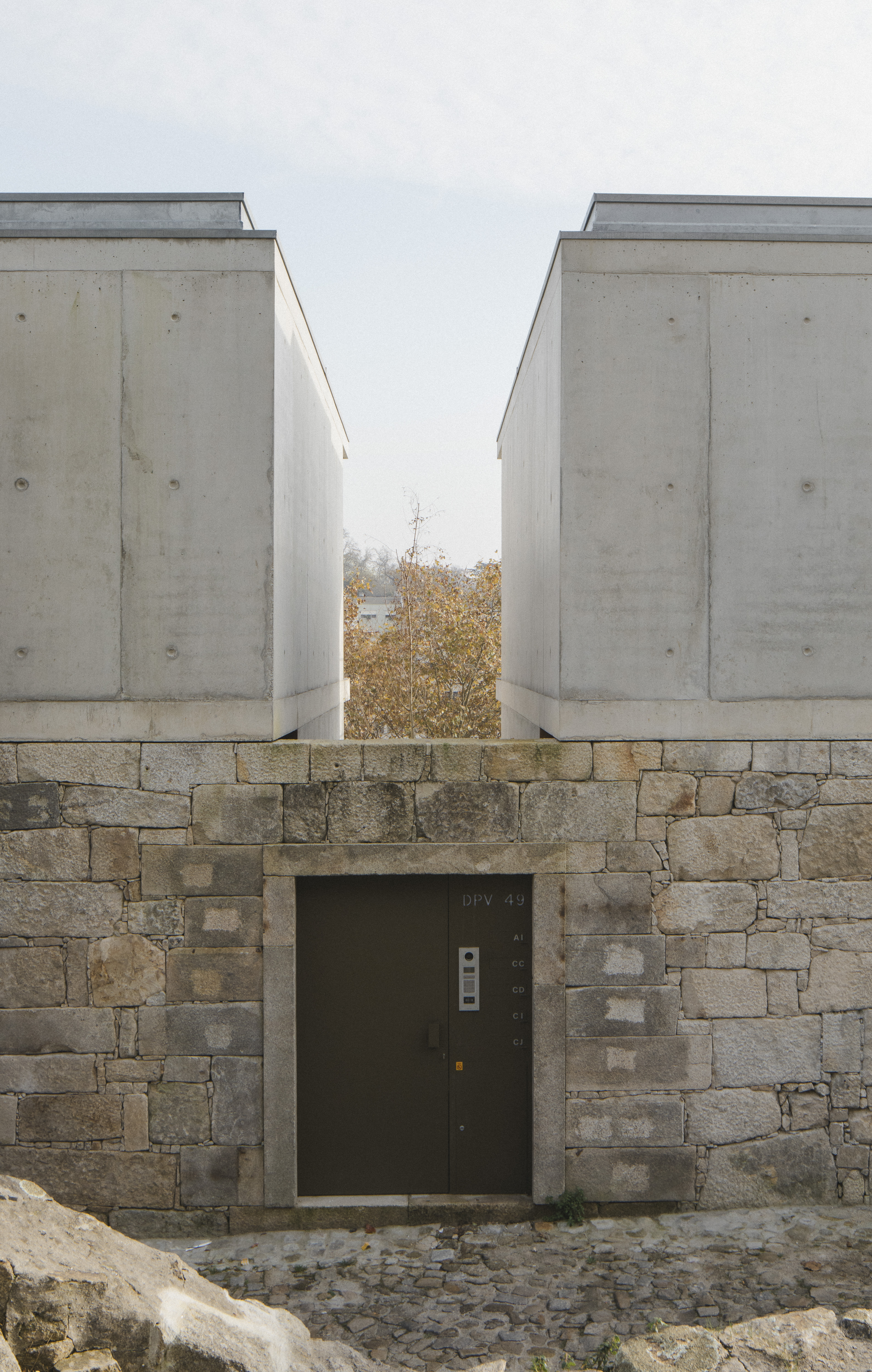 The new housing units vary in size and typology — from one to three bedrooms — and are organized across one or two levels. Each volume is carefully placed to respect the terrain, creating private yet open spaces, with patios, balconies, and secluded gardens enhancing the relationship between interior and exterior. Some dwellings take the form of courtyard houses, each with its own independent green space. Along Rua da Pena, three volumes rest on the original granite wall, forming a solid base while allowing light and access through carefully placed voids. The east-facing orientation of the houses ensures privacy between units, avoiding direct confrontation and promoting a sense of calm domesticity.